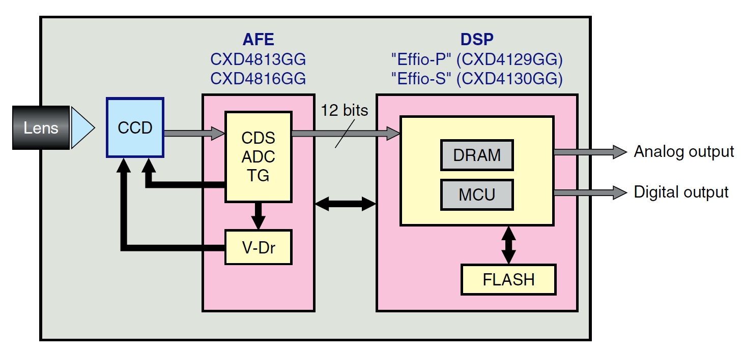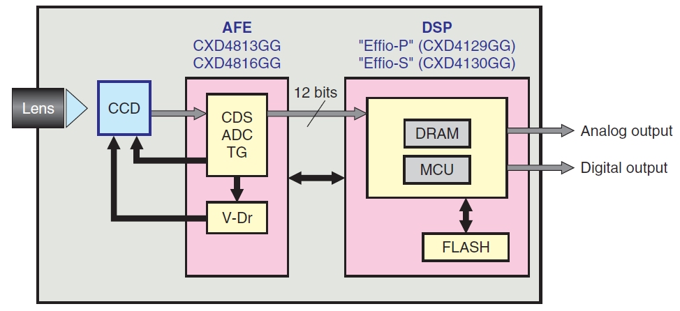 Блок схема видеокамеры построенной на процессоре SONY Effio-P Effio-S (более 700 ТВЛ)